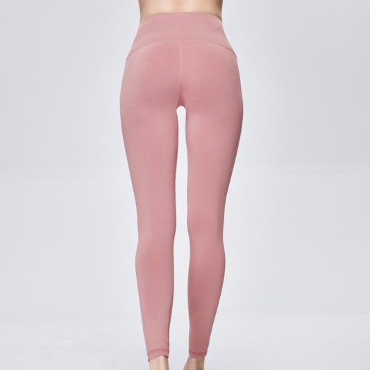 Leggings - Cropped High-waisted Solid Color Medium Bean Paste